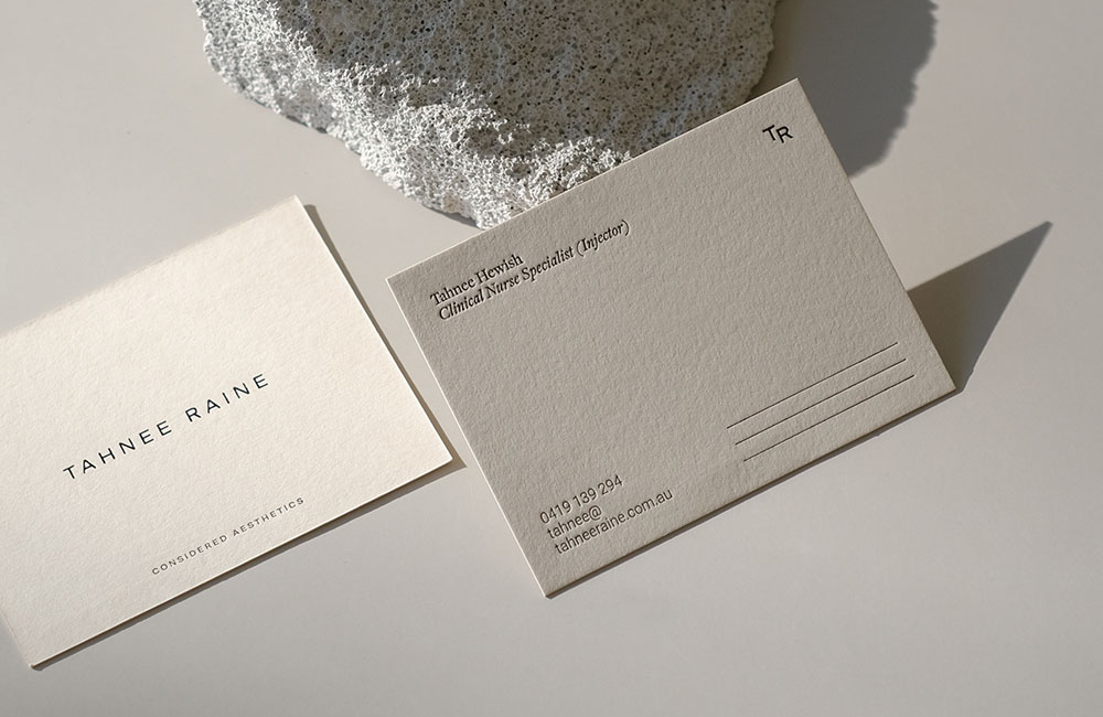 The brandmark of Tahnee Raine eloquently embodies a minimalistic and timeless design, encapsulating the quintessential values for which the brand is renowned. With its simple aesthetic, it exudes a high caliber of quality, striking a meticulous balance between distinguishing itself in the market and maintaining a universally appealing demeanor. The brandmark employs a more refined, slender, and expansive typeface, meticulously chosen to infuse a perception of premium quality and elevated sophistication.